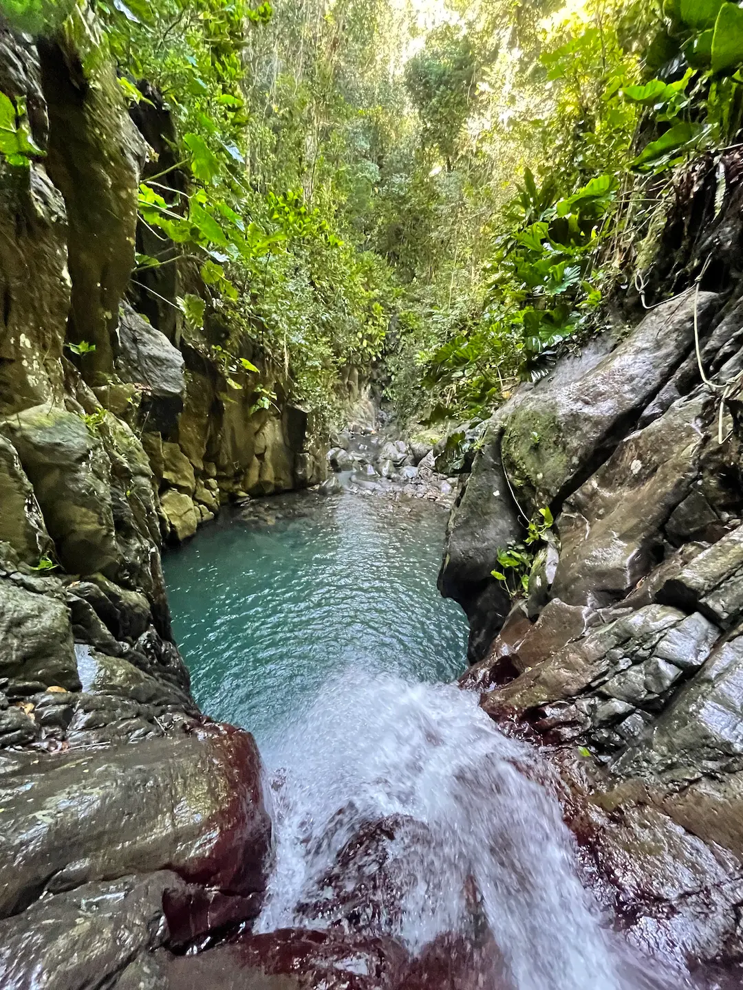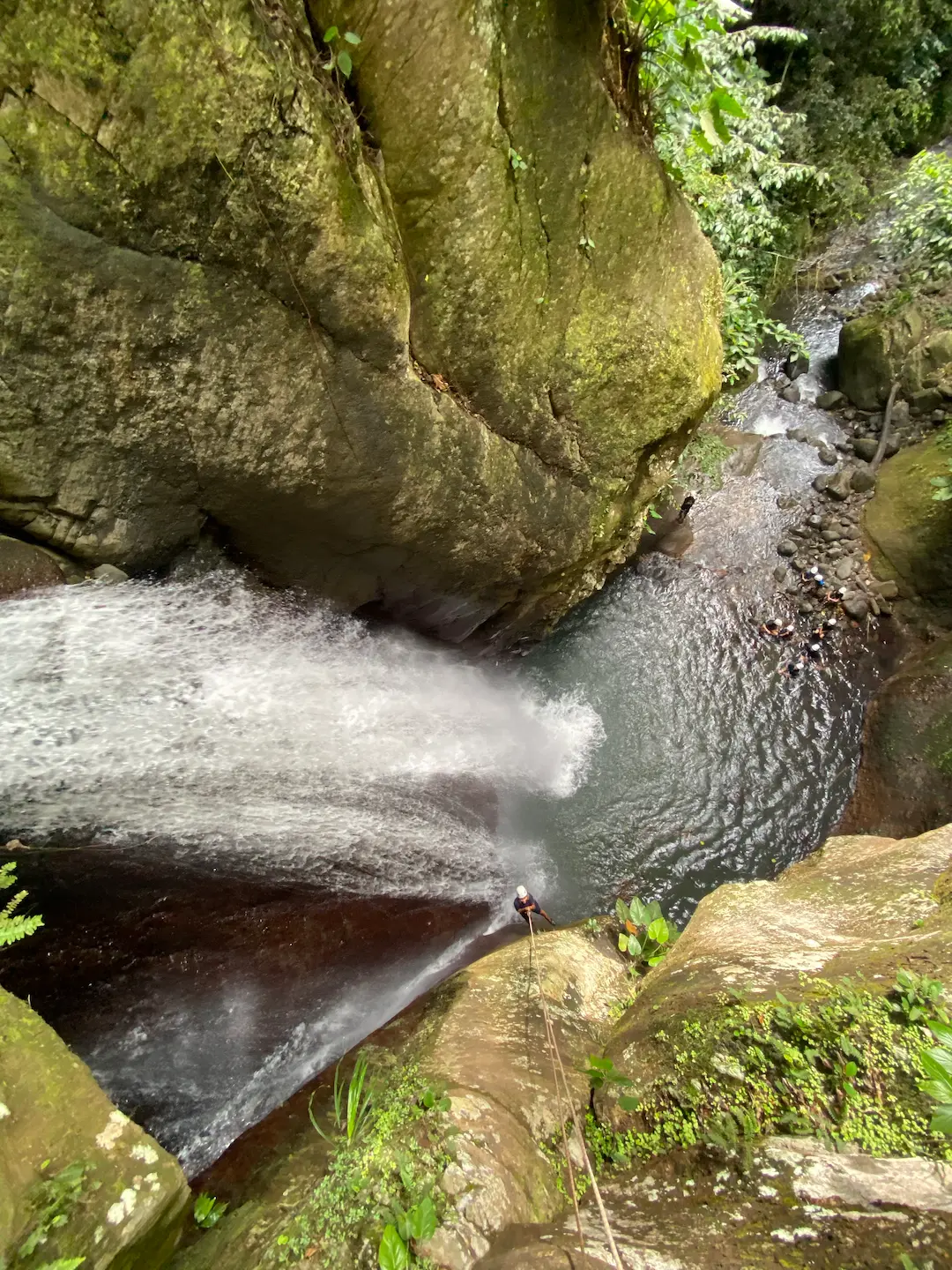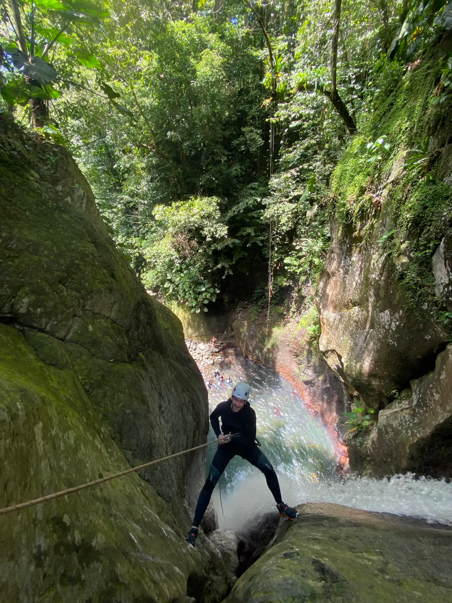 Dans cette formule, nous partons à l’aventure pour journée dans un canyon magnifique et sauvage, situé au cœur de la forêt tropicale. Le parcours est une combinaison parfaite de cascades, de sauts et de toboggans naturels ! C’est l’endroit idéal pour débuter le canyoning, car aucun obstacle n’est obligatoire ; l’objectif principal est de se faire plaisir et de profiter de la nature. Le saut le plus haut mesure 8 mètres, offrant une montée d’adrénaline pour les plus audacieux, tandis que la cascade la plus haute à descendre en rappel atteint 30 mètres, promettant une expérience mémorable. Le parcours est également ponctué de petits toboggans naturels pour des sensations plus douces.